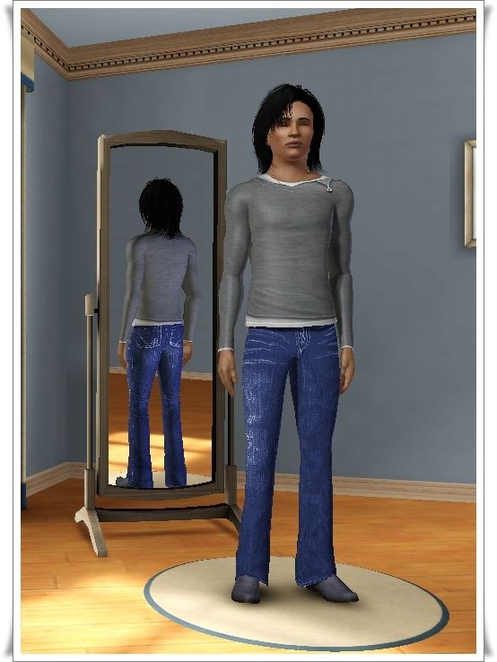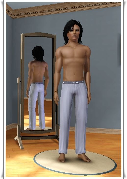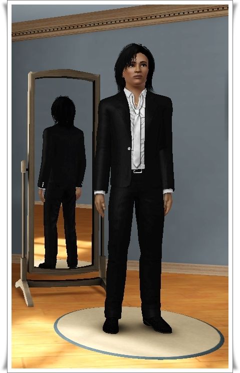 This is my sim Kelvin. i must let you all know his eyes and skin are defaults i cannot remember where the skin came from but it is nice the eyes are from shady on mod the sims. his favourites are